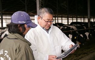言葉で自分自身を表現できない牛たちを、人が感じ取り世話をしてあげねばなりません。 私たちは、お客様と一緒に酪農の現場を見て情報を共有し、最先端の技術、理論を取り入れて、最善の提案をしてまいります。 お客様の笑顔と、牛たちの成績向上が私たちの喜びです。